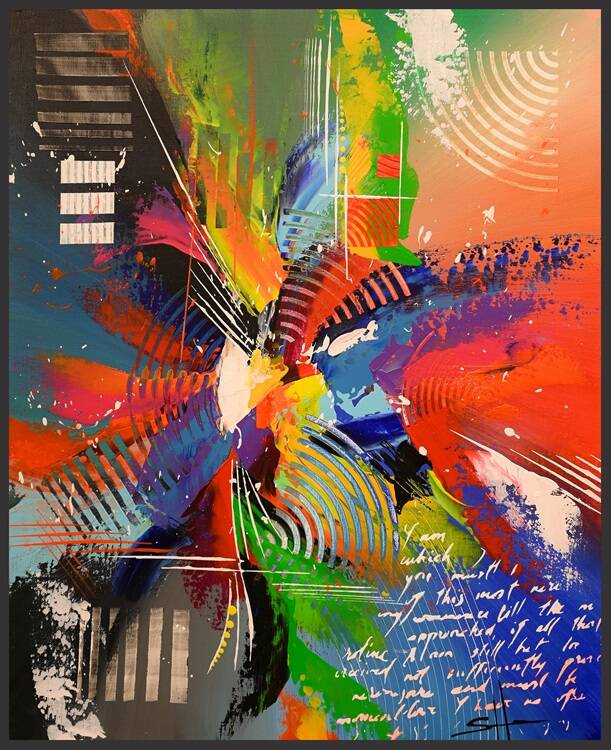 Cette peinture me fait penser à une explosion stellaire. Elle dégage pas mal d'énergie et l'intensité des ondes semblent se perdre dans un cosmos étoilé. Nos technologies d'astrophysique étant présentes pour capter ces nébuleuses si fréquentes à l'échelle intersidérale et pourtant si rares à l'échelle humaine. C’est un voyage infini, vers le grand vide.